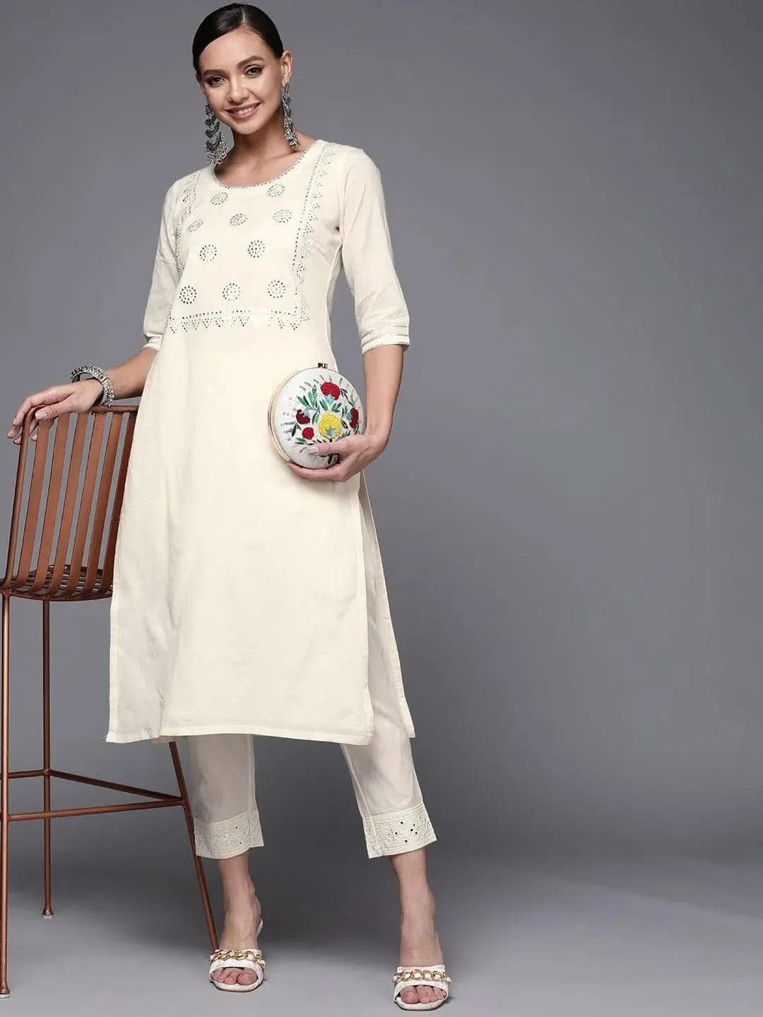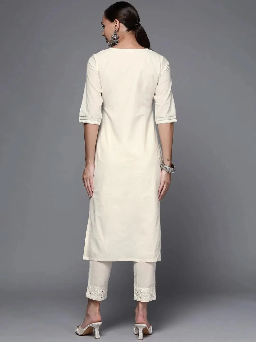Off White Yoke Design Cotton Straight Kurta